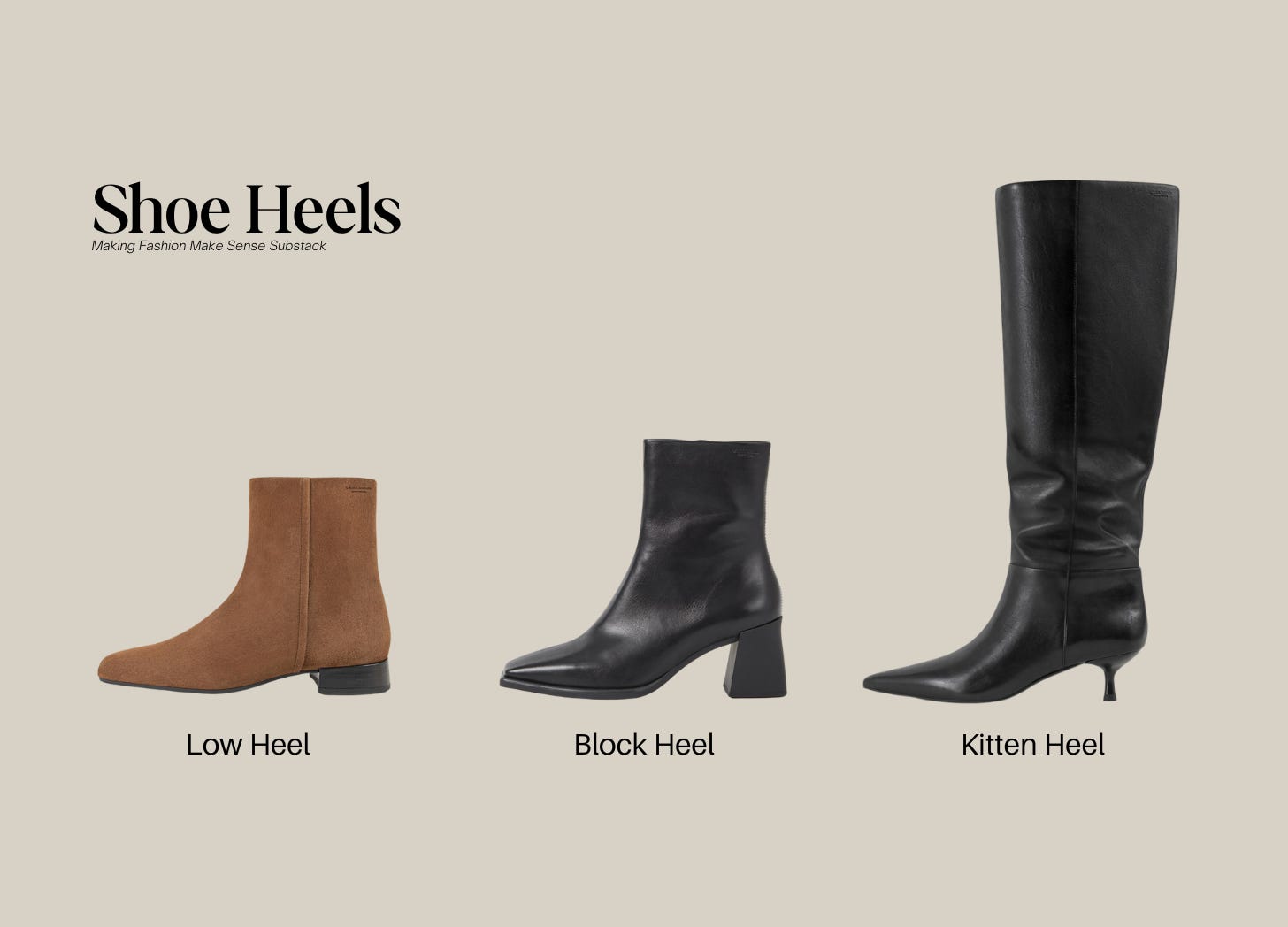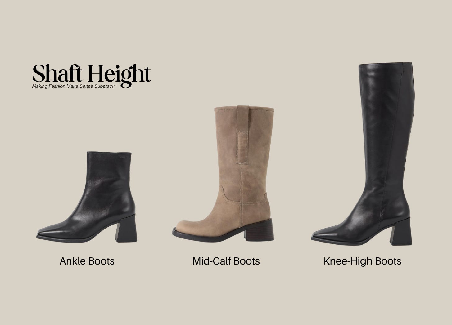 Ankle Boots: The most versatile and easy to style. Works with jeans, skirts, and dresses.